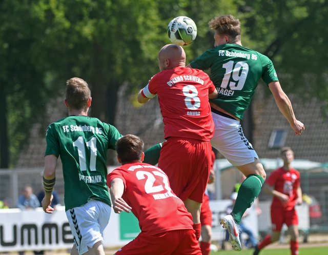 FC Schönberg 95: Przemyslaw Szymura, Erik Schameitke, Marvin Miltzow, Hannes Komoss (90. Timo Poch), Hendrik Schröter, Nick Heymann (80. Marcel Behm), Thomas Aldermann (90. Edison Grguri), Felix Kaben, Marcel Nagel, Marvin Worreschck, David Rosinski