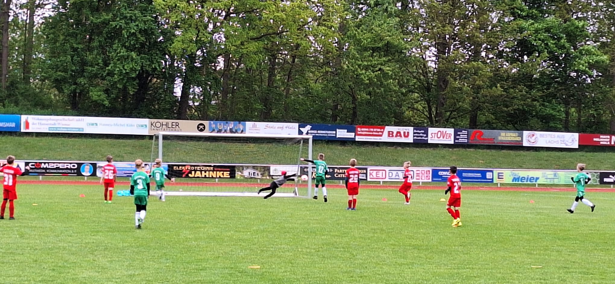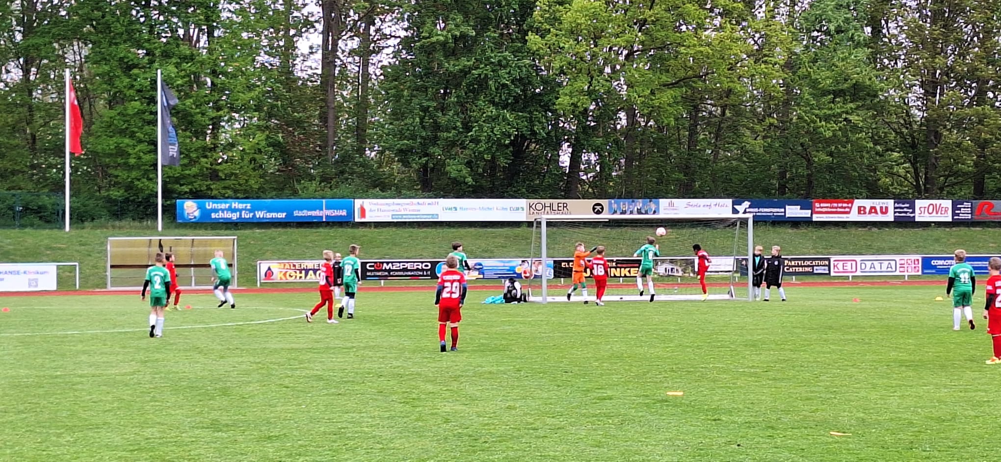 Drei Tage nach dem tollen Erlebnis als Einlaufkinder mit den Profis des FC Hansa Rostock im Landespokal-Halbfinale im Schönberger Palmberg-Stadion waren die F1-Junioren des FC 95 wieder im Punktspielalltag gefordert. Vier Wochen nach dem 2:1-Sieg beim FC Mecklenburg Schwerin im letzten Punktspiel feierten die Maurinekicker einen Kantersieg beim FC Anker Wismar III. Nach einer 9:3-Pausenführung hieß es am Ende 18:3 für de Gäste. Angeführt von Damian Boddin (9 Tore) trafen noch weitere 5 Spieler ins Schwarze.