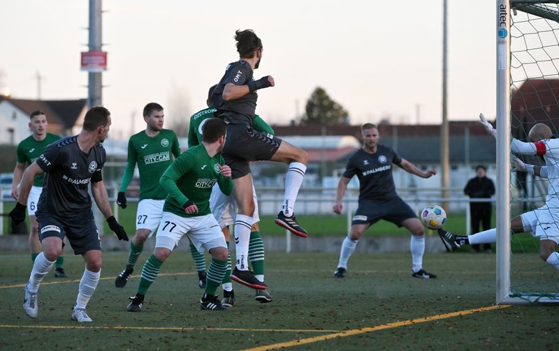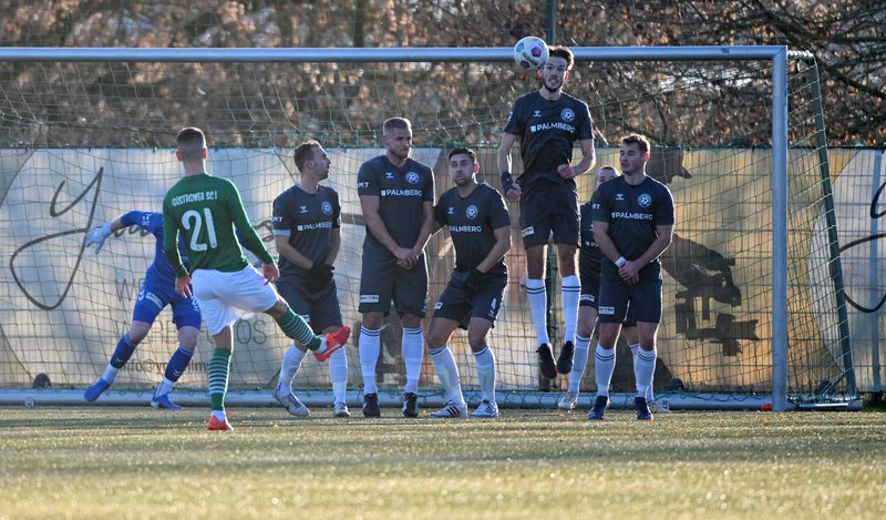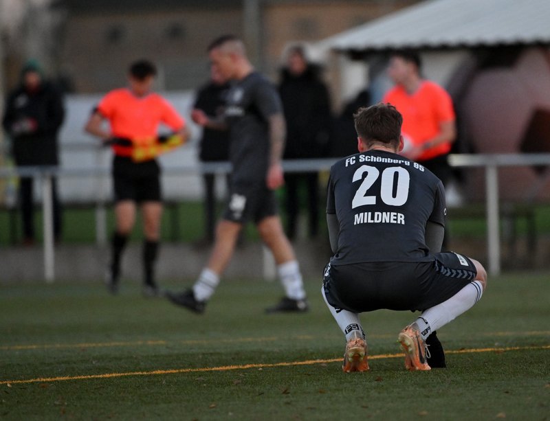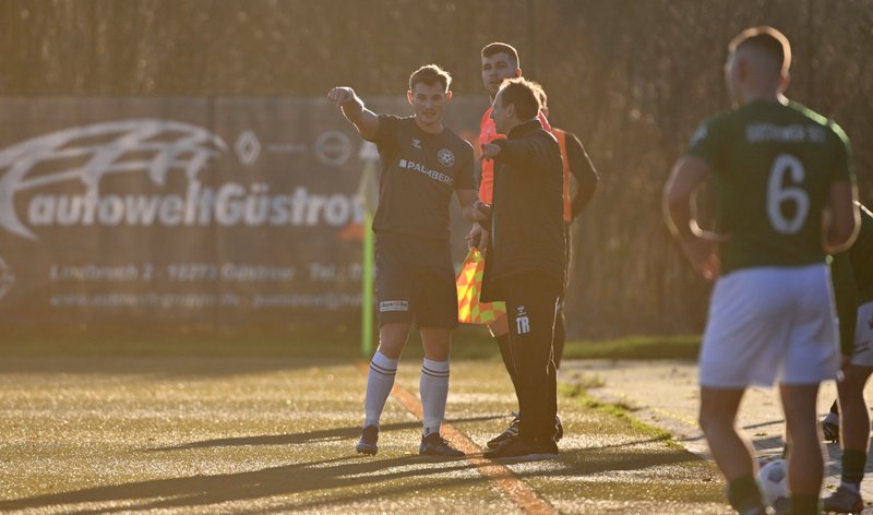 Die knappe Halbzeitführung der Gastgeber ging in Ordnung. Güstrow war das aktivere Team und holte sich mit einem Grube-Kopfball nach einer Ecke die verdiente Führung. Zudem musste sich Niklas Baeskow bei einem gefährlichen auf die Mauerecke gezogenen Freistoß in der 14. Minute sehr lang machen und Sava-Andre Mihajlovic schlug am Ende seines beeindruckenden Sturmlaufs einen Haken zu viel. Für Schönberg traf Michel Beckmann den Außenpfosten.