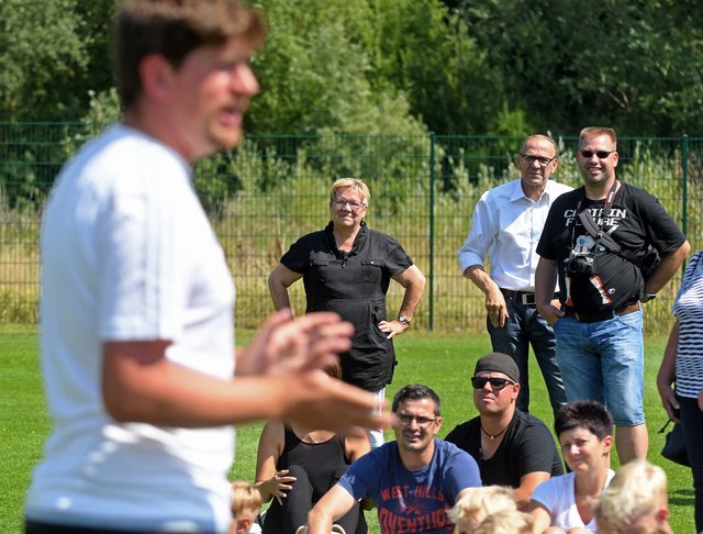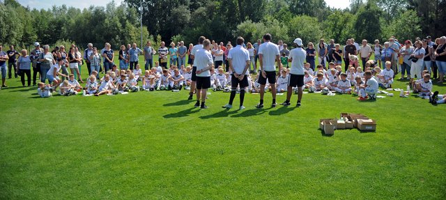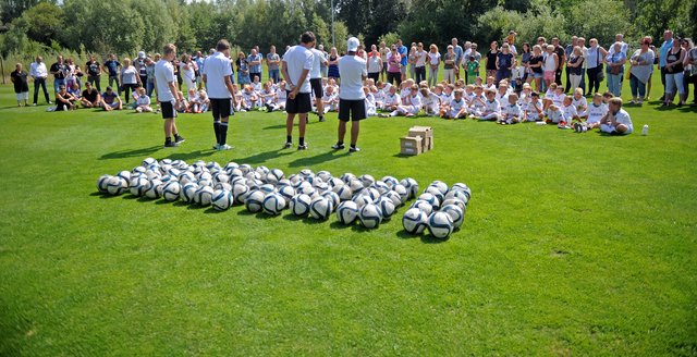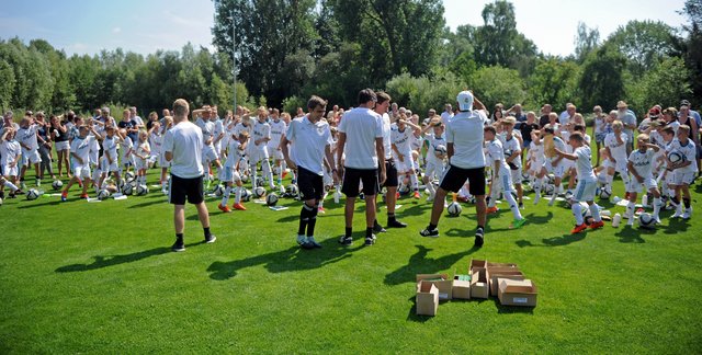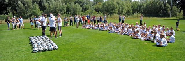 Bazooka-Goals, GPS-Gürtel „Tracktics“, elektronische Leibchen, Smartbälle und spezielle Bälle von „Corpus Rasenreich“, eine Analysetechnologie aus Südkorea – auf dem Kunstrasenplatz des FC Schönberg 95 wurde in dieser Woche trainiert wie bei den Großen. Die Fundación Real Madrid Clinics Western Europe war mit dem Real-Madrid-Feriencamp zu Gast an der Maurine und ermöglichte insgesamt 85 Kindern und Jugendlichen 5 aufregende Tage. U.a. mit Stationstraining und Turnieren wurde den jungen Fußballern ein anspruchsvolles Programm geboten, bei dem neben der sportlichen Weiterentwicklung als ganz wichtiger Aspekt auch soziale Werte vermittelt werden sollte, wie Campleiter Robin Graupner heute auf der Abschlussveranstaltung noch einmal erklärte. Wie in den vergangenen Jahren lief bis auf ein paar Wetterproblemchen Mitte der Woche alles perfekt. Robin Graupner bedankte sich ausdrücklich beim gastgebenden FC Schönberg 95 für die gute Unterstützung und sagte: „Der FC Schönberg 95 war wieder ein Partnerverein, wie wir uns das vorstellen. Vielen Dank insbesondere an Monika und Wilfried Rohloff, die sich aufopferungsvoll um alles gekümmert haben.“