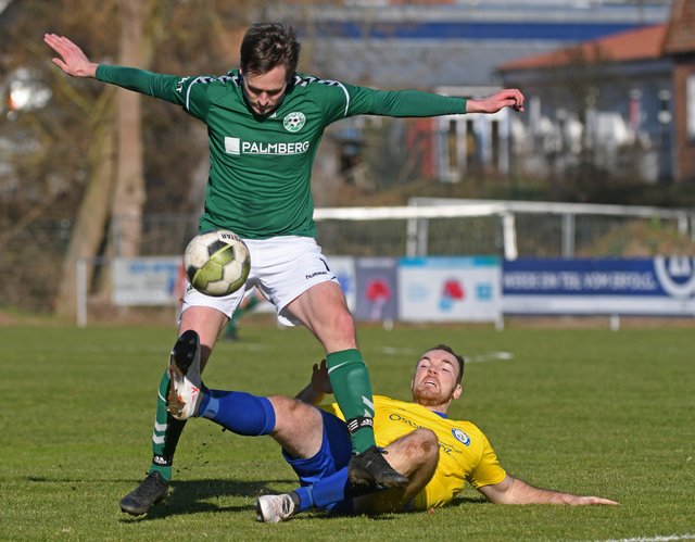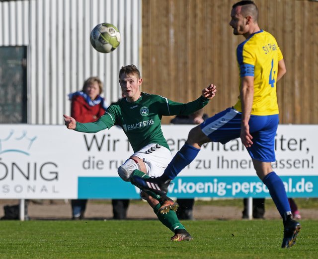 Schon ab der 3. Minute lag Schönberg vorn. Marcel Nagel legte einen langen hohen Ball in den Strafraum mit der Brust für Hannes Komoss vor. Dieser kam zwar nicht am Plater Keeper vorbei, doch Marcel Nagel, dem die Kugel dabei wieder vor die Füße fiel, konnte problemlos zum frühen 1:0 einschieben. Auch danach hatte Plate zweimal Glück. Zum einen, weil der freistehende Thomas Aldermann in der 18. Minute nicht genau genug zielte und zum anderen weil Philipp Siering bei seinem Tritt von hinten in das Standbein von Nick Heymann nur Gelb sah. Schönberg ließ die Sache im weiteren Verlauf der ersten Hälfte kontrolliert und ruhig angehen, spielte ab und zu einen langen Ball nach vorn, der aber in der Regel vom SV Plate abgefangen wurde.